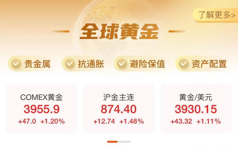 10月6日,国际金价在亚洲交易时段延续涨势,纽商所国际黄金期货价格一度涨至3956.2美元/盎司,首次站上3950美元关口。现货黄金价格一度涨至3932.06美元/盎司,首次站上3900美元关口,再创历史新高。